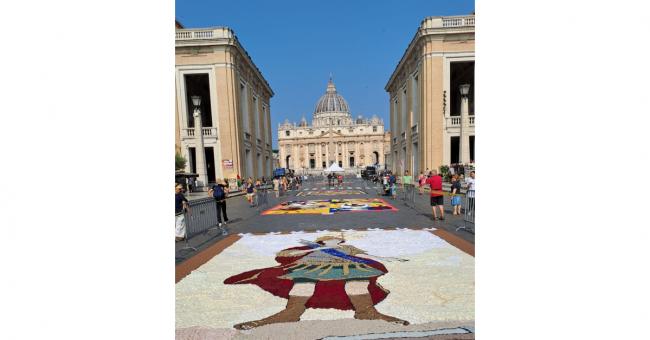 Sistemato in via della Conciliazione, nei pressi della Basilica di San Pietro, il pannello di San Vitale, patrono di San Salvo, per la partecipazione della Pro Loco San Salvo alla decima edizione dell'Infiorata storica di Roma in occasione della festa dei Santi Pietro e Paolo patroni della città eterna,