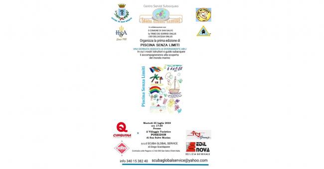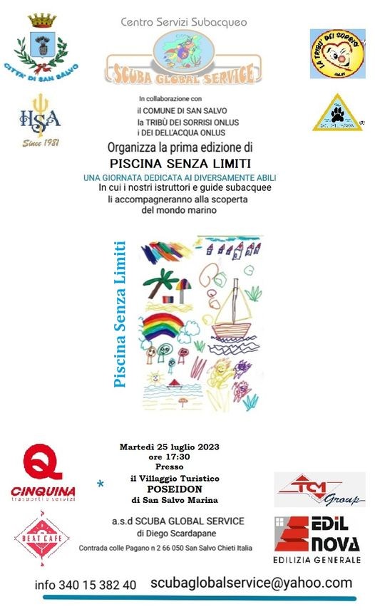 E’ un’altra delle tante proposte estive del Centro Servizi Subacqueo Scuba Global Service di Diego Scardapane e dell’Assessorato alle Politiche sociali del Comune di San Salvo in collaborazione con La Tribù dei Sorrisi e i Dei dell’Acqua.