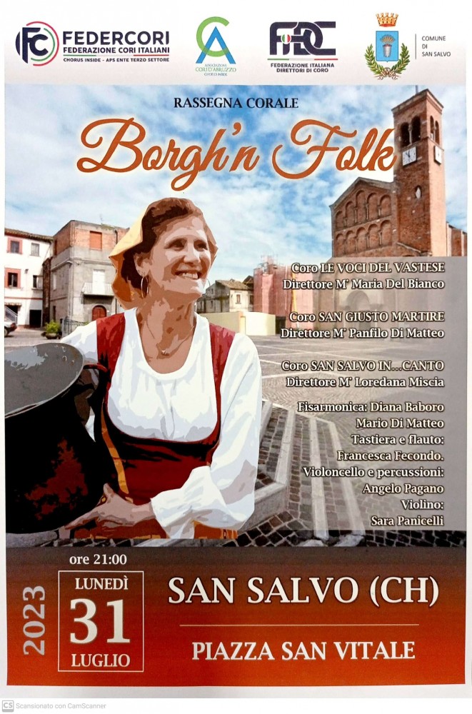 In piazza San Vitale a San Salvo, nella serata di lunedì 31 luglio, appuntamento con la rassegna corale "Borgh'n Folk".