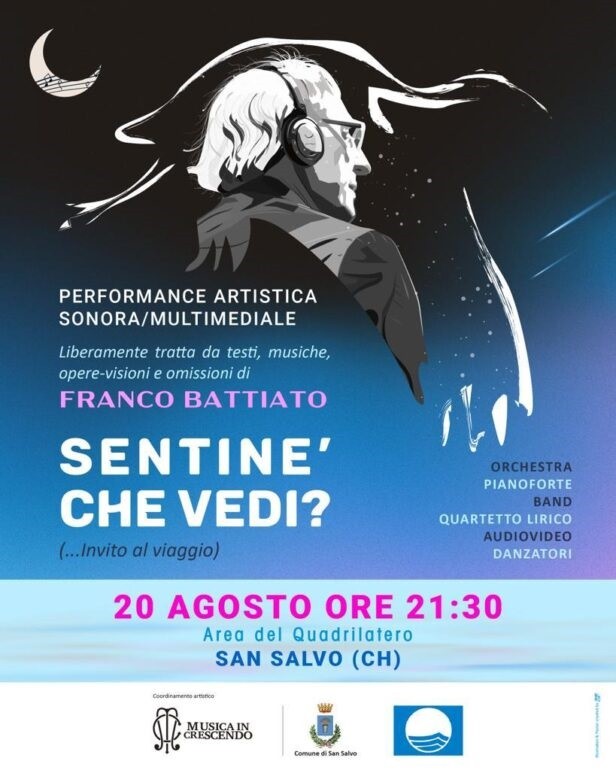 Piazza San Vitale sarà il palcoscenico naturale per accogliere domenica 20 agosto alle ore 21:30 “Sentine’ che vedi?”, la performance artistica multimediale liberamente tratta da testi, musiche, opere, visioni e omissioni di Franco Battiato, il poliedrico e geniale artista siciliano scomparso nel maggio del 2021.