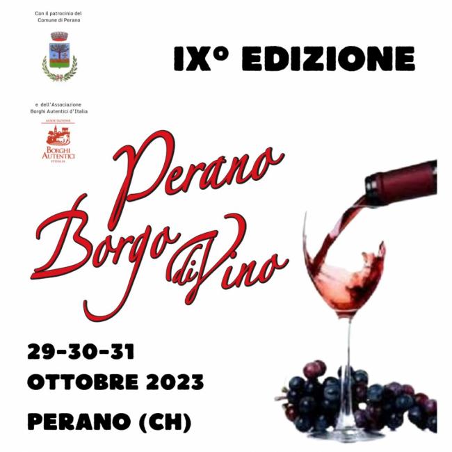 Perano, borgo autentico d'Italia della provincia di Chieti, ospiterà a partire dal 29 al 31 ottobre 2023 la terza edizione di Perano Borgo diVino, ossia un percorso enogastronomico con degustazione di prodotti tipici e galà dei grandi vini d'Abruzzo.