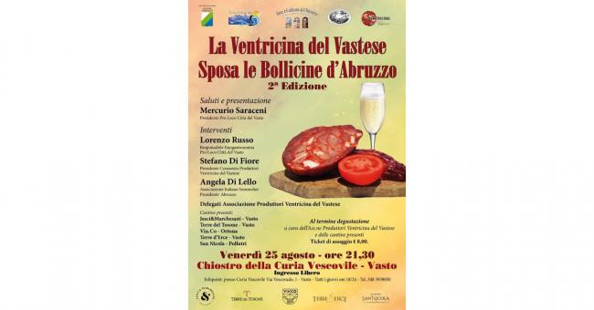 “La Ventricina del Vastese sposa le Bollicine d'Abruzzo” - Seconda edizione 2023 - Venerdì 25 agosto, ore 21,30 Chiostro Curia Vescovile Vasto