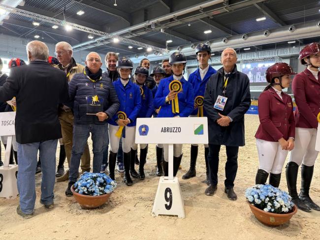A rappresentare l’Abruzzo, sono stati: Maria Francesca Di Properzio su Cammira, Corrado Scordella su Aranykapu Adaman, Anna Carolina Ceresini su Queen Van De Eyckenhoeve, seguiti dall’istruttore Emiliano Varagnolo della Scuderia La Cordijana, Greta D’Angelo su Mercurius V.S., istruttore Giovanni Meneghetti del C.E. Le Grotte, Alessia Ciccolella su Lucky Luc, istruttrice Sara Sborgia della Scuderia Sborgia.