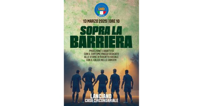 “Sopra la barriera”, cortometraggio che racconta l’esperienza sportiva e sociale delle squadre Libertas Stanazzo Calcio a 5 di Lanciano e Palla al Piede Calcio a 11 di Padova, sarà presentato in anteprima in Abruzzo giovedì 13 marzo alle ore 10.00 all’interno del teatro del penitenziario stesso. L’evento rappresenta un’importante occasione per riflettere sul valore inclusivo dello sport e sul suo ruolo rieducativo all’interno degli istituti penitenziari.