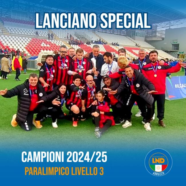 Portacolori d’Abruzzo saranno le squadre campioni regionali del Calcio Paralimpico 2024/25: nel “livello 3” il successo lo ha conquistato il Lanciano Special, nel “livello 1” vittoria finale per la Percorsi ODV Pescara.