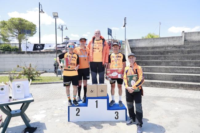 La Sirente Bike Marathon ad Aielli, gara impegnativa dal profilo, ha messo a dura prova gambe e fiato degli atleti. Tra i risultati più brillanti la vittoria di Giuseppe Cinalli nella sua categoria (M8) sul tracciato point to point, buoni piazzamenti di categoria per Leonardo Peluso tra (3° M7) e in modo particolare per Davide Zimarino tra i Master 3 con un tempo migliorato di 10 minuti rispetto al 2024, segno di un ottimo percorso di crescita.