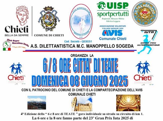 A Chieti, nella giornata di domenica 8 giugno, si corre pensando ai chilometri in relazione con il tempo. Torna per la quarta edizione la singolare gara podistica 6/8 Ore Città di Teate, che trasformerà l’elegante cornice della Villa Comunale in un palcoscenico sportivo coinvolgente per gli appassionati di ultramaratone su strada, in un contesto urbano che unisce promozione territoriale e sport.