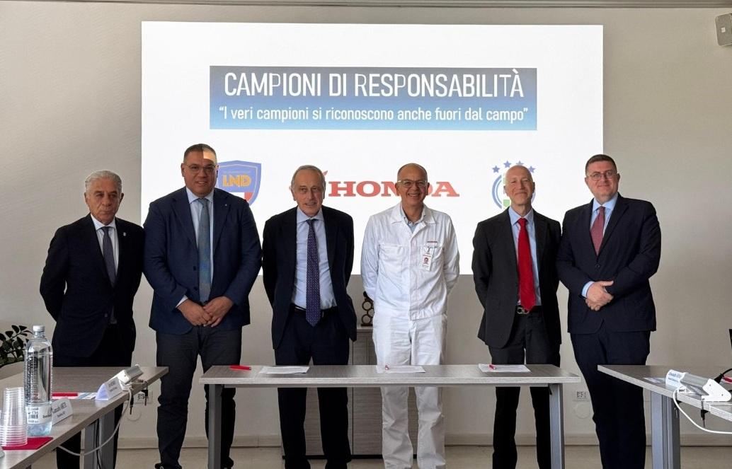 La Lega Nazionale Dilettanti, Honda Italia Industriale e Honda Motor Europe Ltd – Italia hanno firmato ieri, nello stabilimento Honda in Val di Sangro, il protocollo d’intesa per il progetto Campioni di responsabilità, rivolto ai ragazzi tra i 10 e i 16 anni tesserati per le società affiliate alla LND.