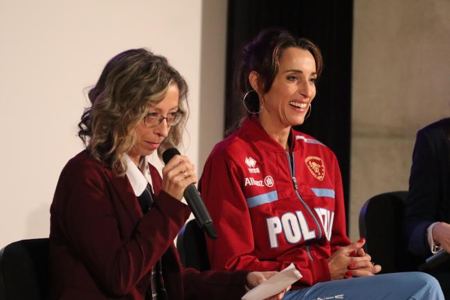 Elisa Di Francisca è stata accolta calorosamente da oltre 300 di studenti e studentesse di primo e secondo grado provenienti da tutta Italia, premiati quali vincitori dell’ultima edizione del concorso nazionale che ha visto la partecipazione anche delle scuole di primo grado nelle sezioni Fumetto, Disegno e Fotografia.