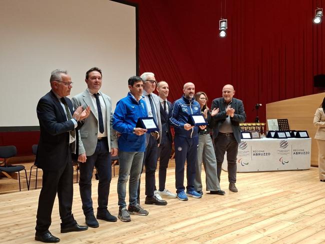 Premiate anche le società coinvolte nel protocollo d’intesa CIP-INAIL, gli istituti scolastici e gli atenei universitari attivi nelle iniziative promosse dal CIP Abruzzo, gli Organismi sportivi regionali. Riconoscimenti per lo studente Emanuele Ventrella (finalista ai Giochi della Gioventù Roma 2025 nel lancio del vortex) e ai tecnici Pierpaolo Addesi (paraciclismo), Marco La Verghetta (tiro a segno), Maurizio Di Giandomenico, Ruggero Visini, Salvatore Podda e Paolo Di Pietro (fisioterapista della nazionale di parasnowboard FISIP).