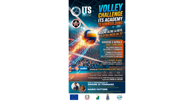 La natura potente dello sport di squadra per veicolare e migliorare comunicazione, fiducia reciproca e spirito di squadra ,rafforzando l’attività di Team Building. Questo è l’obiettivo del ° TORNEO DI PALLAVOLO TRA TUTTI GLI OLTRE 100 STUDENTI FREQUENTANTI IL PRIMO ANNO DELL’ITS ACADEMY di LANCIANO (LANCIANO, CHIETI AVEZZANO, TERAMO)