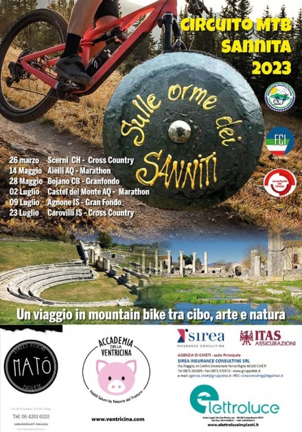 Sull’asse Abruzzo-Molise si è alzato il sipario sul nuovo calendario 2023 del circuito di mountain bike Sulle orme dei Sanniti giunto all’ottava edizione che ingloba tutte le discipline del fuoristrada: il cross country e le granfondo-marathon.