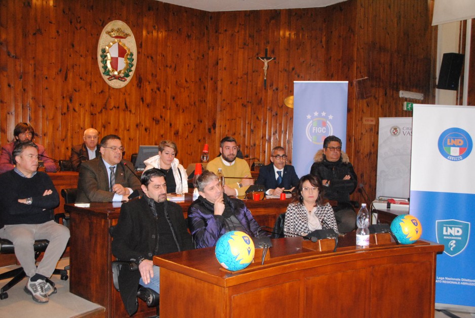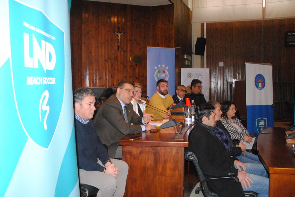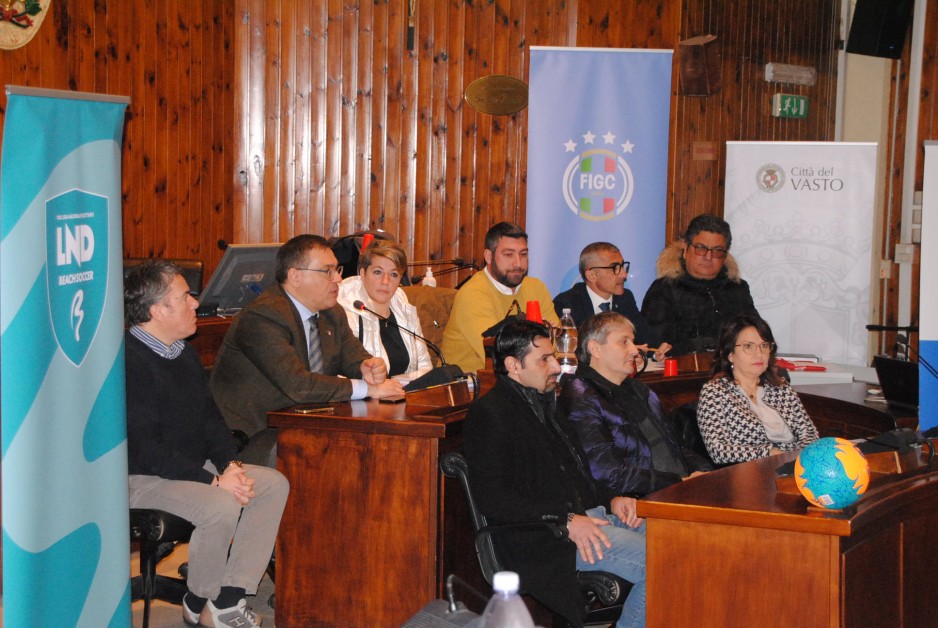 Stamattina, nell'Aula consiliare ‘Giuseppe Vennitti’, la presentazione ufficiale dell'appuntamento, presenti, tra gli altri, di Roberto Desini, coordinatore del Dipartimento Beach Soccer della Lega Nazionale Dilettanti, Ezio Memmo, presidente Lnd Abruzzo, Flavia Antonacci, responsabile regionale beach soccer, del consigliere regionale Manuele Marcovecchio, del vice sindaco e assessore al Turismo Licia Fioravante, dell'assessore allo Sport Carlo Della Penna, del consigliere comunale Pino Travaglini, responsabile della Delegazione di Vasto della Lnd, del consigliere comunale Giuseppe Soria, giocatore anche della Nazionale e allenatore della disciplina, e di Nicola Bellandrini, responsabile logistico dell'organizzazione.