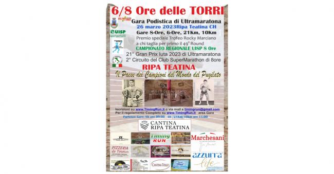 Con un programma appetitoso e colmo di novità , l’Atletica RunTime presieduta da Graziano Di Lizio si prepara ufficialmente al battesimo del nuovo evento podistico denominato 6/8 Ore delle Torri a Ripa Teatina, in data domenica 26 marzo, sotto l’egida della Uisp Settore di attività atletica leggera Abruzzo e Molise.