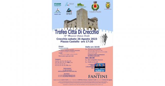 È tutto pronto o quasi a Crecchio per alzare il sipario sulla 12^ edizione del Memorial Antonio Sciotti-Trofeo Città di Crecchio, una delle tante perle organizzative del sodalizio Asd Vini Fantini che si svolge in parallelo con i festeggiamenti locali in onore di Santa Elisabetta.