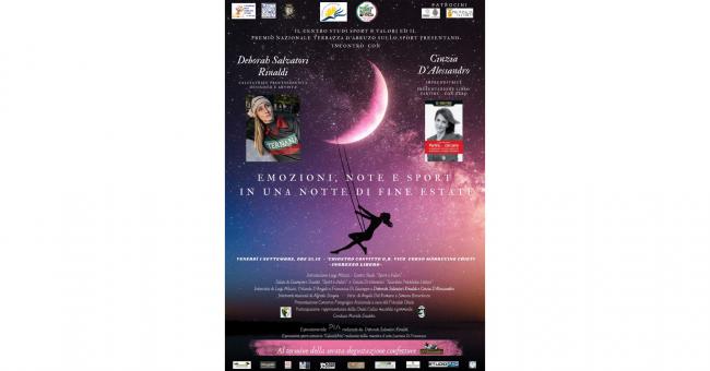 L’associazione Sport&Valori continua le sue iniziative con l’evento “Emozioni, note e sport in una notte di fine estate” in programma venerdì 1° settembre alle ore 21,15 al Chiostro del Convitto G.B. Vico di Chieti.