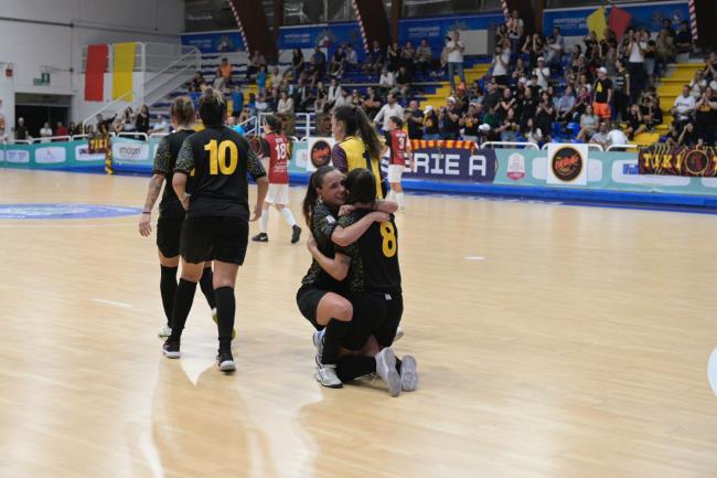 Girandola di gol nella ripresa con Guidotti che realizza la seconda marcatura della partita, seguita immediatamente dalla rete di Spadano, che dimezza lo svantaggio portando il punteggio sul 2-1. Pochi minuti più tardi Prenna da una parte e Lanziloti dall’altra mettono il proprio nome sul tabellino dei marcatori, mantenendo alta la tensione fino alla rete di Berte, migliore in campo delle giallorosse, che dopo aver centrato due pali nel corso del match, mette il sigillo alla vittoria per 4-2 del Tikitaka.