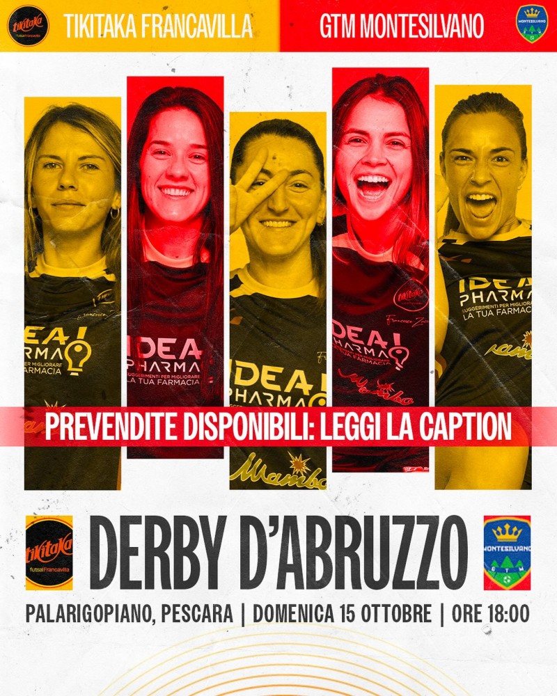 Appuntamento dalle ore 18, sul parquet del PalaRigopiano di Pescara, per l’attesa sfida che metterà di fronte Tikitaka Futsal Francavilla e GTM Montesilvano.