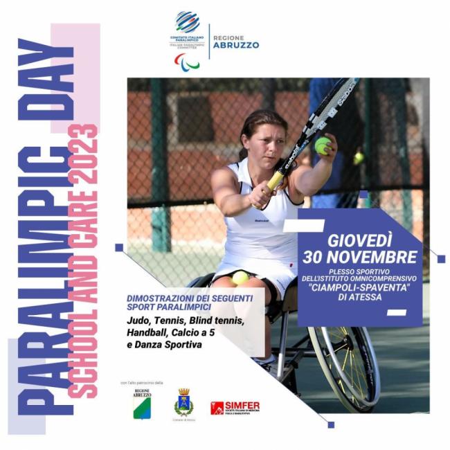 Lo sport come momento di condivisione e di inclusione sarà il tema dominante del Paralimpic Day – School and Care (lo sport paralimpico incontra la scuola e la scienza) programmato per giovedì 30 novembre ad Atessa presso l’Istituto Omnicomprensivo Ciampoli – Spaventa, con il coinvolgimento degli alunni del medesimo plesso scolastico atessano e anche da Fossacesia con la presenza degli studenti dell’Istituto Comprensivo Polidori.