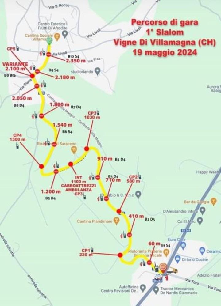 Il percorso dello Slalom è di 2.5 km, all’interno di un panorama suggestivo delle vigne di Villamagna.