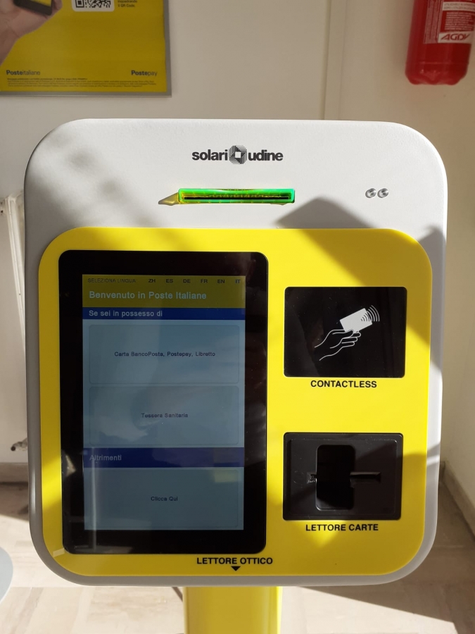 Si tratta di innovativi totem touch screen che consentono di gestire al meglio i flussi di clientela, ottimizzando le tempistiche soprattutto attraverso la scelta anticipata dei servizi. Il nuovo apparecchio, infatti, prima di stampare il classico “numeretto” di prenotazione del turno a sportello, consente di selezionare l’operazione desiderata toccando semplicemente lo schermo e permettendo di effettuare una scelta ancora più rapida anche attraverso la “lettura” delle carte elettroniche abbinate al Conto Bancoposta o al Libretto Postale.