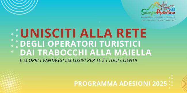 La DMC "Terre del Sangro Aventino" apre ufficialmente la campagna di adesioni per l’anno 2025, invitando operatori del territorio di sua competenza a entrare a far parte di un network consolidato che lavora per lo sviluppo e la promozione turistica del territorio. Un’opportunità concreta per chi desidera contribuire al miglioramento dell’accoglienza turistica e valorizzare le eccellenze locali.