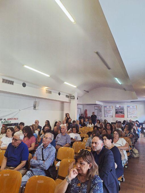La mattinata si è aperta con la testimonianza dell’esperienza a Gaza dell’infermiera di Medici Senza Frontiere, Martina Paesani. Un momento toccante, nel quale l’operatrice umanitaria ha raccontato le difficoltà quotidiane di un popolo, quello palestinese, consapevole di non avere un luogo sicuro in cui ripararsi dall’esercito israeliano e di rischiare la vita anche durante la distribuzione del cibo, e le condizioni proibitive degli ospedali, in cui mancano garze e antidolorifici ed assistere i malati è estremamente difficile. Martina Paesani ha concluso il suo intervento ribadendo la necessità a “restare umani” ed a far di tutto perché cessi lo sterminio in corso.