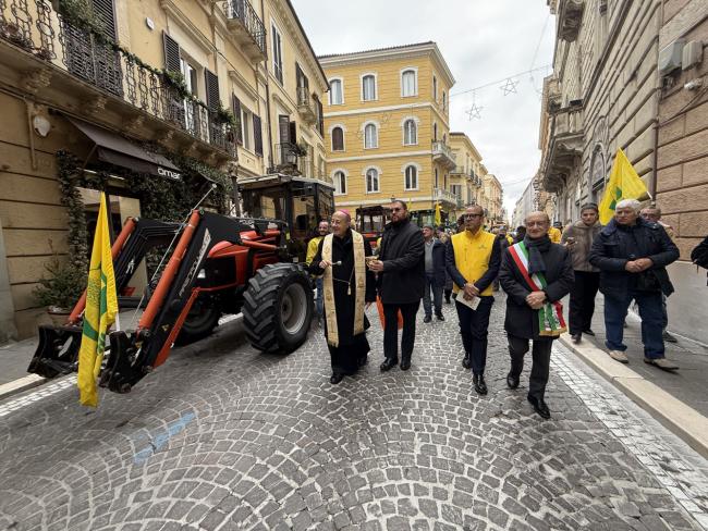 Grande curiosità a Chieti per la benedizione dei mezzi agricoli presenti lungo Corso Marrucino e per il mercato contadino in piazza San Giustino con le eccellenze in vendita fino a sera e l'inaugurazione della nuova sede della federazione provinciale.