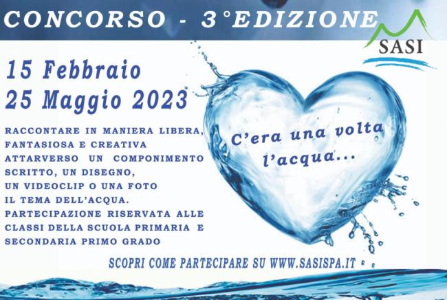 Dopo il successo e la numerosa partecipazione delle scuole torna il concorso promosso dalla Sasi dal titolo significativo “C’era una volta l’acqua” che quest’anno firma la terza edizione arricchita da interessanti novità.