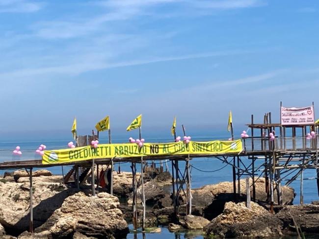 Coldiretti ha salutato così la carovana rosa con l’obiettivo di consegnare agli appassionati di ciclismo l’immagine di un Abruzzo genuino e suggestivo, tra il mare e le colline coltivate, simbolo di una natura incontaminata e di tradizioni antiche. Un modo per ricordare il forte che lega lo sport al cibo: oltre alle bandiere gialle - con punti di maggiore concentrazione nelle campagne di Nereto, sulla torre del Cerrano, nel centro storico di Ripa Teatina e nella città di San Salvo - in occasione del Giro sono state allestite alcune postazioni per la raccolta firme “no al cibo sintetico” che Coldiretti sta promuovendo in tutta Italia con l’obiettivo di accelerare la trasformazione in legge del DL contro il cibo da laboratorio.