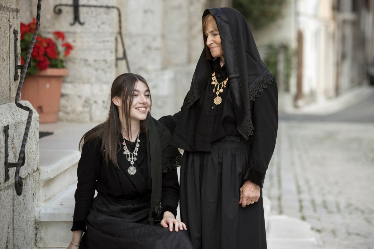 Per l'occasioni le donne forti e gentili abruzzesi, Maria Elena Leone, Pietronilla Saltarelli e Michela Saltarelli, hanno indossato Il costume tradizionale femminile di Pescasseroli. L'abito nero, che ha sostituito quello antico sfarzoso e vivace, venne introdotto intorno al 1846 quando alcune donne di Pescasseroli che si recavano a Ischia per delle cure termali furono oggetto, a Napoli, di curiosa e indiscreta attenzione. Le donne trovarono rifugio a Procida dove scambiarono i loro costumi con quelli delle donne locali. Tornate poi a Pescasseroli decisero di usare quel costume anche per la quotidianità.