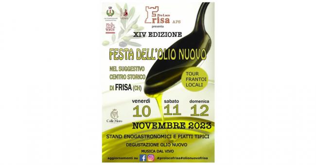 E' giunta alla sua XIV edizione la Festa dell'Olio Nuovo, tradizionale e sempre apprezzato appuntamento in programma a Frisa.
