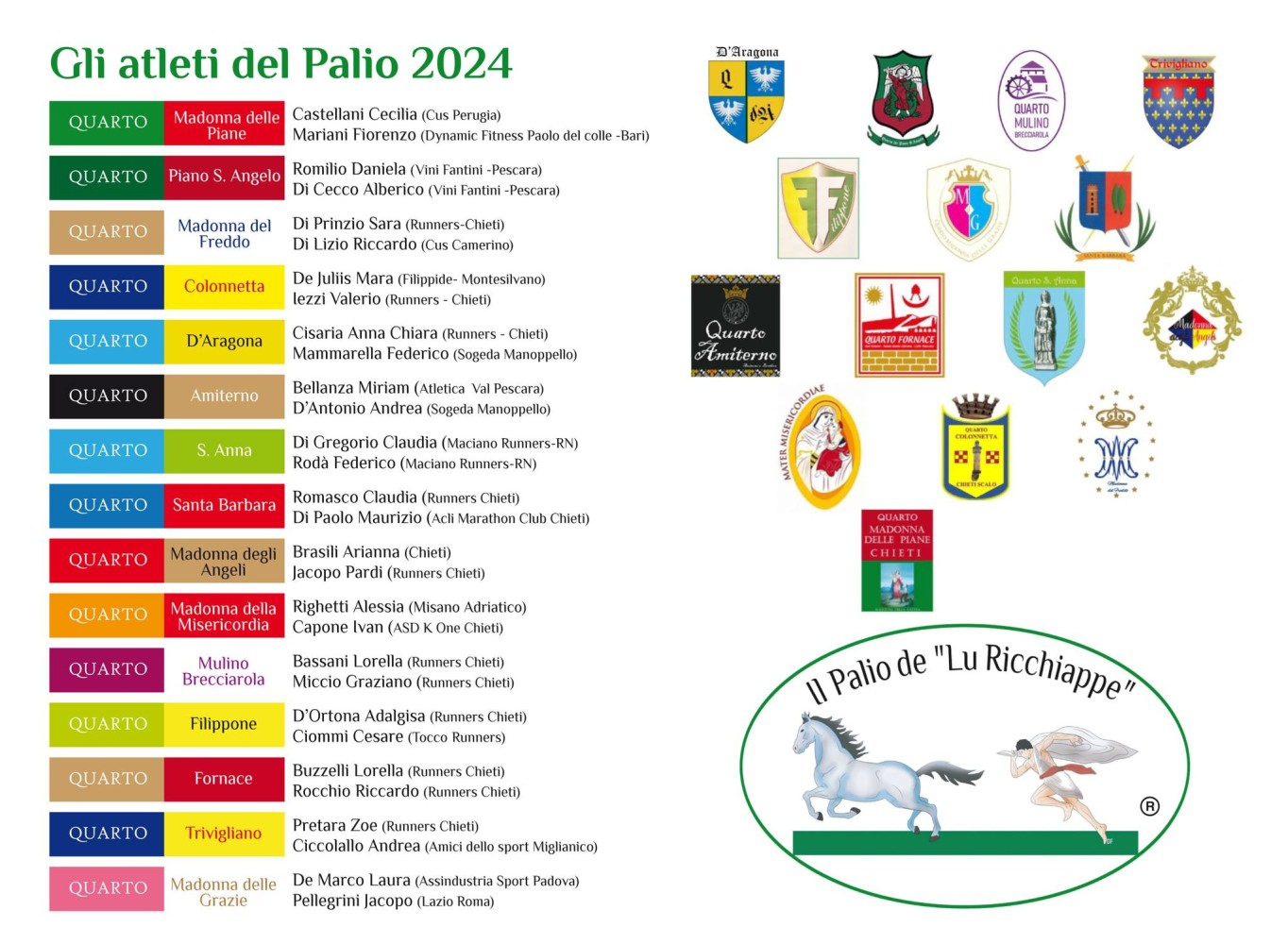 Una manifestazione che è pronta a rinnovarsi ancora una volta, il Palio de Lu Ricchiappe, pur restando sempre fedele a se stessa. Ci dice Concetta De Sanctis: “Quest'anno, come l'anno scorso, l'arrivo sarà in Piazza Vico, sia per l'indisponibilità della Pescheria a causa dei lavori di ristrutturazione, sia per coinvolgere un ulteriore pezzo di centro storico molto scenografico che altrimenti resterebbe escluso dalla manifestazione. Torneranno i bus navetta da Megalò ed è confermata anche la gara Junior per gli under 15. Ci saranno novità per quanto riguarda la sfilata, che quest'anno sarà arricchita dai Banderesi di Bucchianico e per la gara: saranno 4 i “cavalli” in competizione, in rappresentanza di Governatore, Mater, Pater e organizzazione”. L'appuntamento è fissato per l'11 maggio a partire dalle 16.30: ancora una volta, il cavallo migliore si vedrà a Lu Ricchiappe.