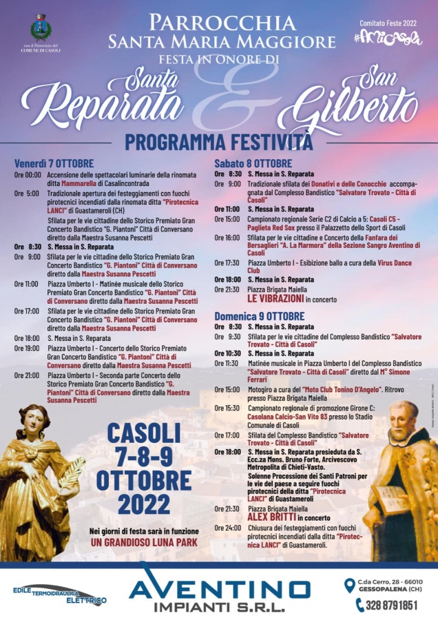Si avvicina il ritorno delle tradizionali feste patronali, dedicate a Santa Reparata e San Gilberto, a Casoli dopo due anni di assenza dovute alle restrizioni imposte dal governo a causa della pandemia di coronavirus